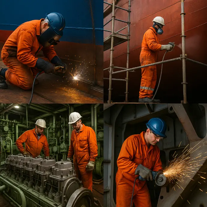 We specialize in hull repairs, mechanical and structural works, and engine overhauls with system checks.Our team handles welding, fabrication, pipe repairs, and replacements with precision.We deliver blasting, painting, onboard troubleshooting, and emergency response services.